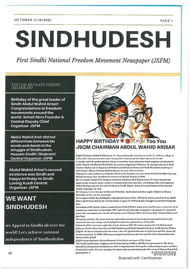 Celebration of Chairman Sohail Abro’s Birthday in London Members and supporters of the Jeay Sindh Freedom Movement (JSFM) gathered in London to celebrate the birthday of our beloved JSFM Chairman Sohail Abro with great respect and revolutionary zeal.